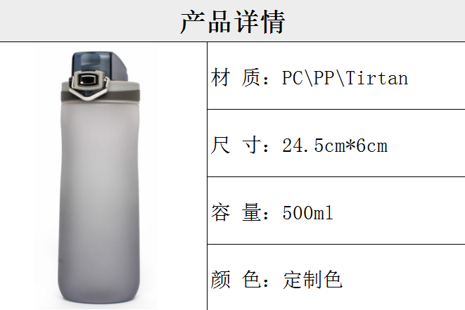產(chǎn)品特點(diǎn):PC/PP材質(zhì)健康更放心,密封不漏水,磨砂質(zhì)感,寬口瓶口不含BPA