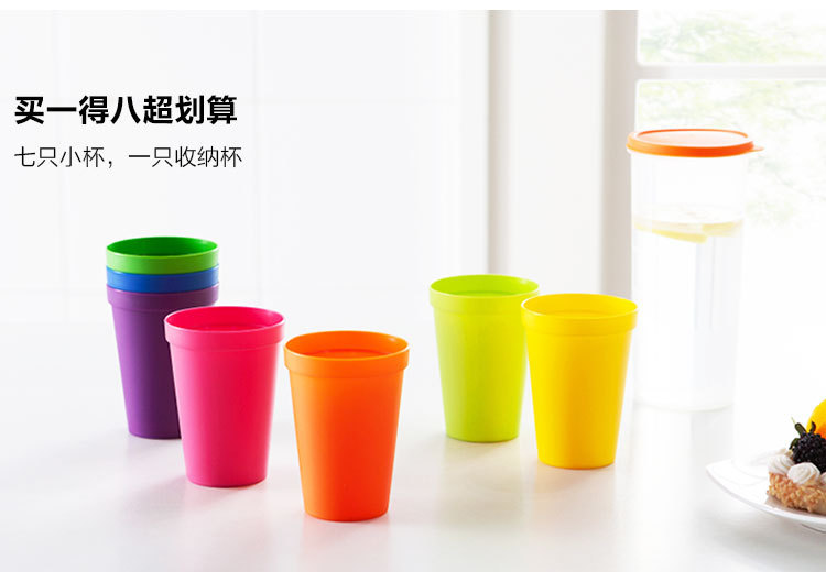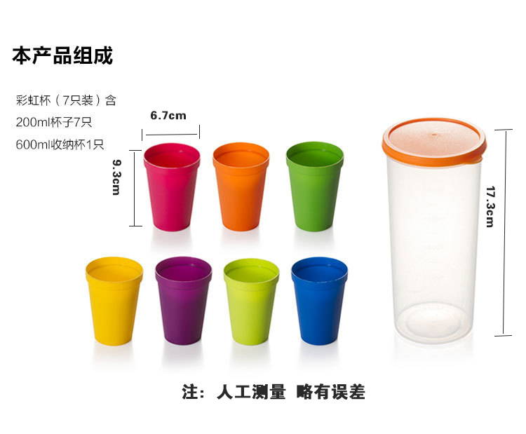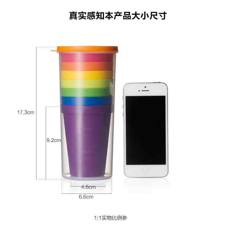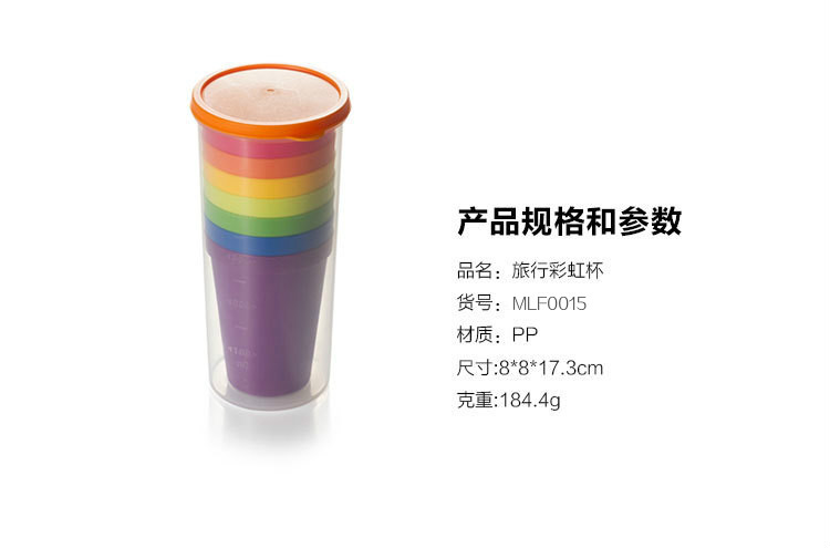 產品特點:旅行彩虹杯,PP材質更加安全健康,磨砂質感,不打滑,邊緣光滑無毛刺,買一得八超劃算